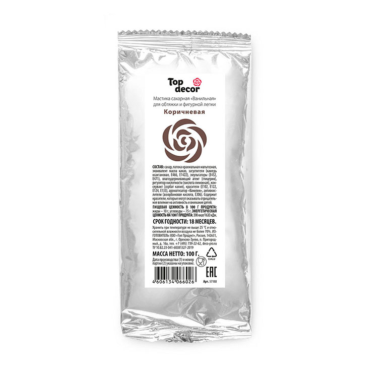 Способ применения: необходимое количество мастики предварительно размять на сухой, слегка подпыленной сахарной пудрой поверхности, до мягкой пластичной консистенции.