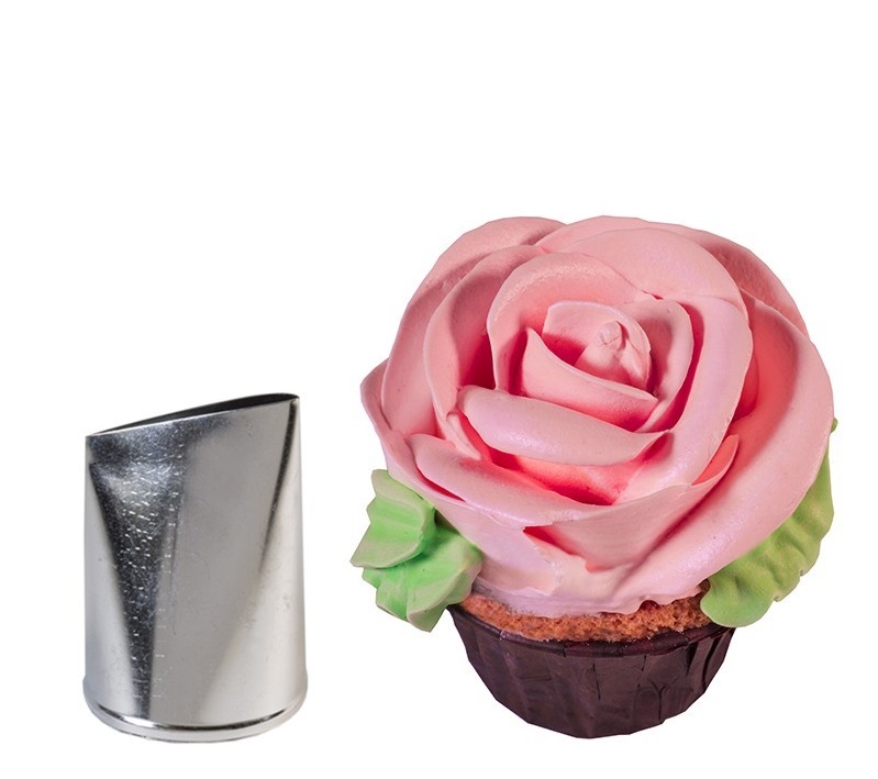 Насадка лепесток поможет в создании лепестков роз или других пышных цветов. Позволяет также сформировать красивые рюши и узоры на ваших десертах.